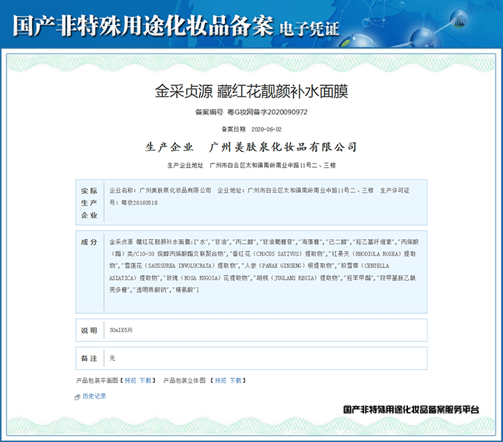 藏紅花靚顏補(bǔ)水面膜備案憑證